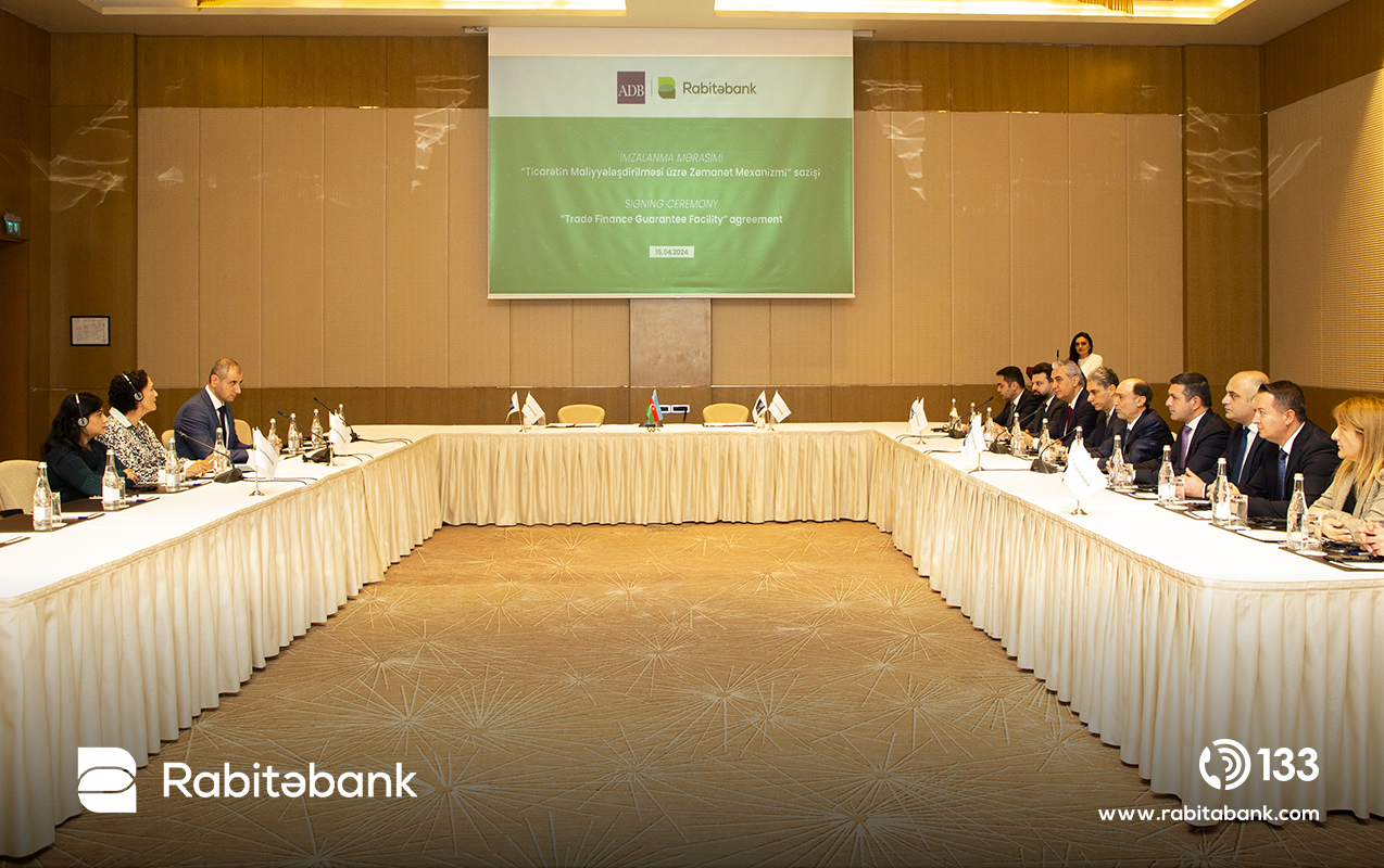 “Rabitəbank” ASC və Asiya İnkişaf Bankı (AİB) arasında “Ticarətin Maliyyələşdirilməsi üzrə Zəmanət Mexanizmi”nə dair əməkdaşlıq müqaviləsi imzalanıb. Müqaviləni “Rabitəbank” ASC-nin İdarə Heyətinin sədri Aydın Hüseynov və AİB-in Azərbaycan üzrə ölkə direktoru xanım Kendis MakDiqan imzalayıblar.