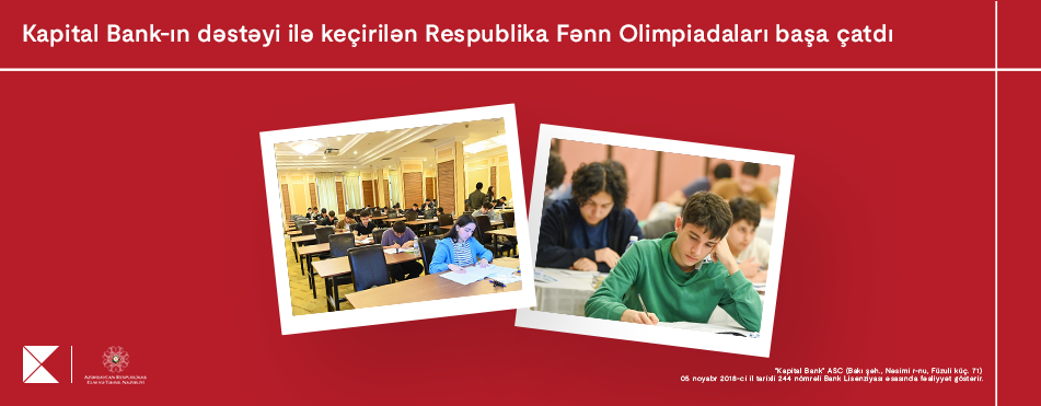 Ölkənin birinci bankı Kapital Bank-ın baş sponsorluğu ilə Azərbaycan Respublikası Elm və Təhsil Nazirliyi tərəfindən 2023-2024-cü tədris ili üzrə keçirilən Respublika Fənn Olimpiadaları başa çatıb. Ümumilikdə 62 mindən çox şagirdin qeydiyyatdan keçdiyi olimpiadalar 8-11-ci sinif şagirdləri arasında, 8 fənn üzrə, 143 mərkəzdə təşkil edilib. Şagirdlər biliklərini Azərbaycan dili və ədəbiyyat, riyaziyyat, fizika, kimya, biologiya, informatika, tarix və coğrafiya fənləri üzrə 3 turda sınayıblar.
