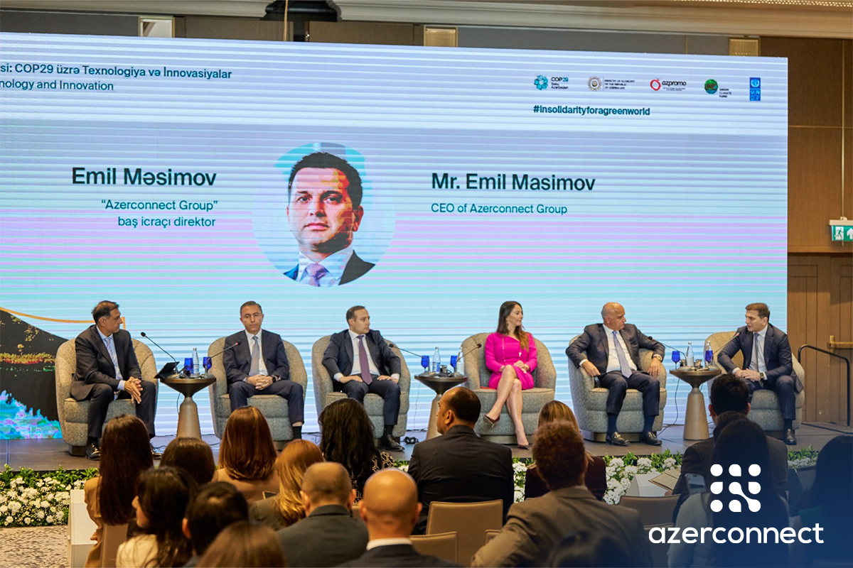 Azerconnect Group-un Baş direktoru Emil Məsimov COP29 çərçivəsində keçirilən Biznes Forumda dayanıqlı innovasiya mövzusunda panel müzakirəsində iştirak edib. O, iqlim dəyişikliyi fonunda yeni texnologiyalar yolu ilə dayanıqlı gələcəyin qurulması mövzusunda çıxış edərək Azerconnect Group-un enerjiyə qənaət, bərpa olunan enerji mənbələrindən istifadə, zərərli tullantıların təkrar emalı və yaşıl biznes modeli istiqamətlərində şirkətin uğurlu təcrübəsini və əldə etdiyi nəticələri paylaşıb.