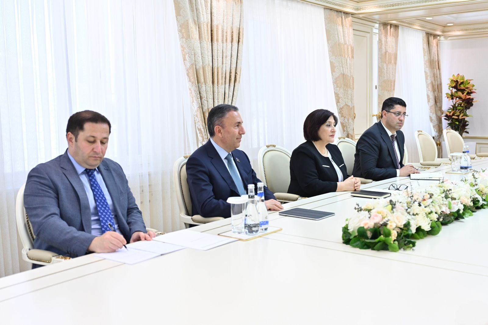 Gürcüstan parlamentinin spikeri Şalva Papuaşvilinin Azərbaycan Milli Məclisinin sədrinə salamlarını çatdıran Davit Sonğulaşvili Azərbaycanda növbədənkənar prezident seçkilərinin ölkəmizin bütün suveren ərazilərində uğurla keçirilməsi münasibətilə təbriklərini çatdırıb. O, iki ölkə arasında əlaqələrin inkişafında qanunverici orqanların mühüm rolunu qeyd edib.