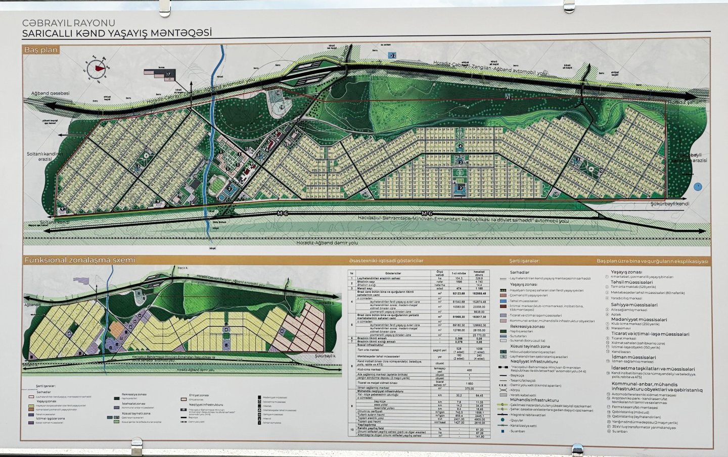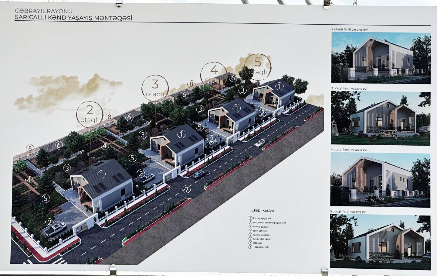 Bildirib ki, 2040-cı ilədək kəndin layihələndirilən ərazisi 313 hektar təşkil edir və bu müddət ərzində kənddə 4428 sakin üçün 940 fərdi ev və bir neçə mərtəbəli bloklu evlərin layihələndirilməsi, eləcə də tikintisi nəzərdə tutulur: “Kənddə inzibati bina, klub-icma, ailə və idman sağlamlıq mərkəzləri, ticarət və məişət xidməti binası, kiçik sahibkarlıq obyektləri inşa olunacaq. Bundan başqa, Baş plana müvafiq olaraq, kənddə əhalinin tələbatına uyğun iki tam orta məktəb və dörd uşaq bağçası tikiləcək. 2026-cı ilədək dövrü əhatə edən “Böyük Qayıdışa dair I Dövlət Proqramı”na müvafiq olaraq, birinci mərhələdə layihələndirilən ərazinin sahəsi isə 125 hektardır. Bu mərhələdə 691 sakin üçün 145 fərdi evin layihələndirilməsi və tikintisi nəzərdə tutulub”. İ.Rzayeva Sarıcallı kəndinin baş planında ümumi sahəsinin 330 hektar təşkil etdiyini də vurğulayıb: “Burada inzibati bina, klub-icma, ailə və idman sağlamlıq mərkəzləri, ticarət və məişət xidməti binası, yanğınsöndürmə deposu, aqrotexniki park, mərasim evi, kənd bazarı, kiçik sahibkarlıq obyektləri tikiləcək. Bundan başqa, əhalinin tələbatına uyğun iki tam orta məktəb və 4 uşaq bağçasının layihələndirilməsi də nəzərdə tutulur. Ümumiyyətlə, bu yaşayış məntəqəsində əhalinin məşğulluğunun təmin edilməsi də diqqət mərkəzində olacaq. “2026-cı ilədək dövrü əhatə edən “Böyük Qayıdışa dair I Dövlət Proqramı”na müvafiq olaraq, birinci mərhələdə layihələndirilən ərazinin sahəsi isə 104 hektardır. Bu mərhələdə kəndə 1 016 sakinin köçürülməsi üçün 242fərdi ev inşa olunacaq”.