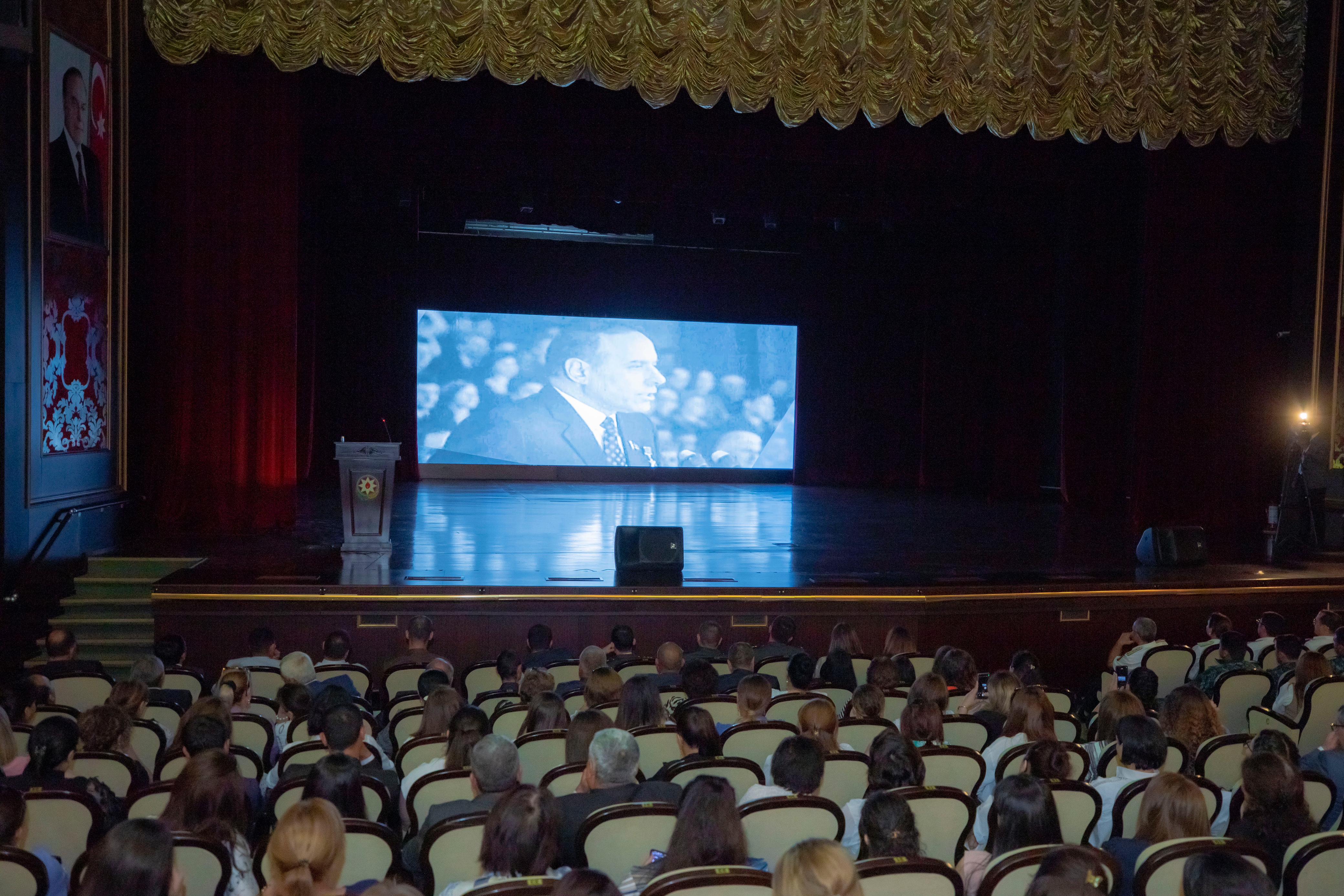 Səlahiyyətli nümayəndə qeyd edib ki, Azərbaycan xalqının Ümummilli Lideri Heydər Əliyev öz xalqını zamanın mürəkkəb tarixi-siyasi sınaqlarından uğurla çıxarmış və ardıcıl mübarizə apararaq onu müstəqilliyə qovuşdurmuş qüdrətli şəxsiyyətdir. Azərbaycan xalqı yeni əsrə və yeni minilliyə məhz Heydər Əliyev zəkasının işığında qədəm qoyub. Davamlı yüksəliş yolunda inamla irəliləyən müasir Azərbaycan Heydər Əliyevin ideyalarının təntənəsidir.