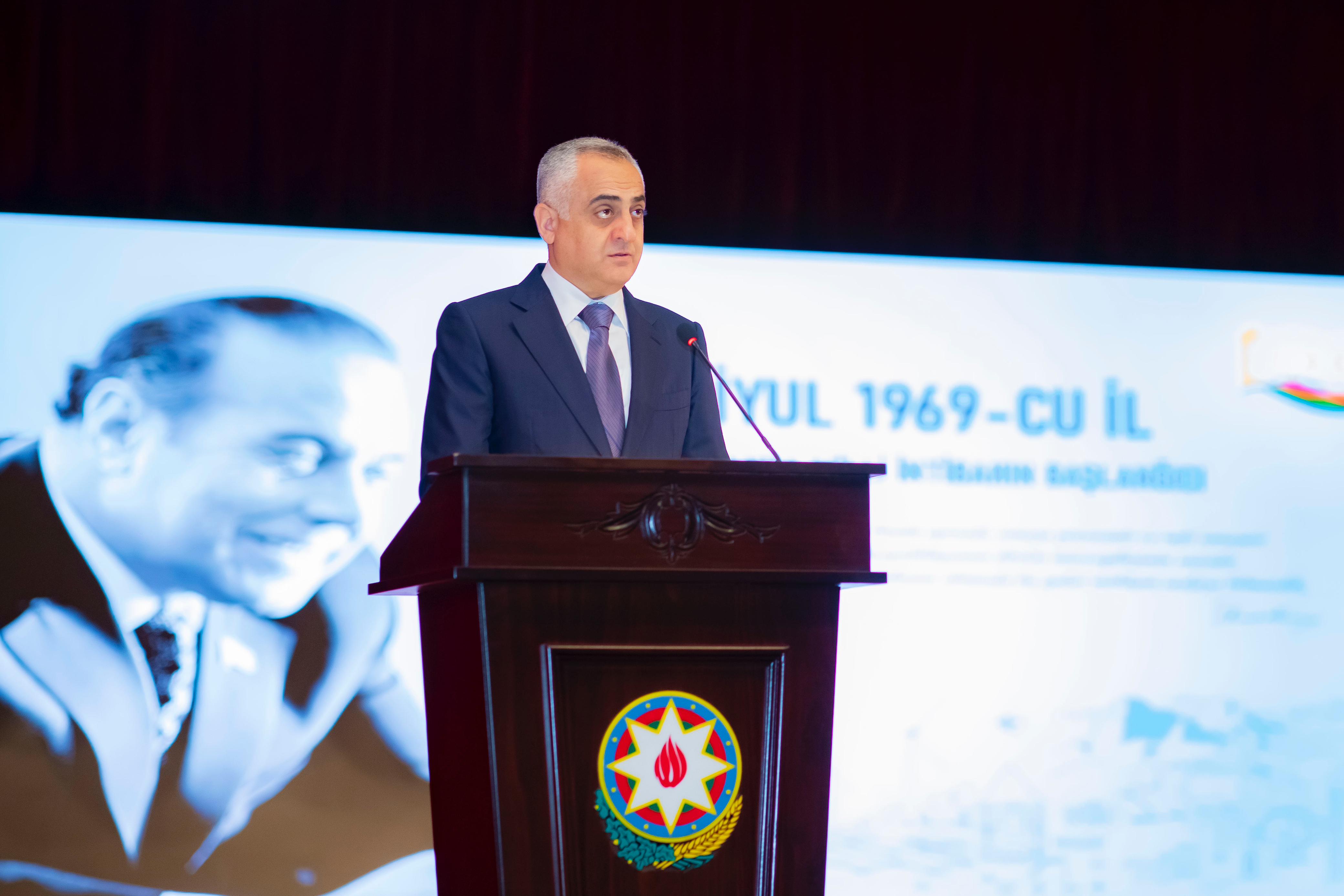 Səlahiyyətli nümayəndə bildirib ki, ötən əsrin 60-cı illərində Azərbaycanda durğunluq hökm sürürdü, respublika iqtisadi göstəricilərinə görə, ittifaq miqyasında sonuncu yerlərdən birində idi. Bu acınacaqlı vəziyyətə Azərbaycan Kommunist Partiyası Mərkəzi Komitəsinin 1969-cu il iyulun 14-də keçirilmiş plenumunda Heydər Əliyev Azərbaycan Kommunist Partiyası Mərkəzi Komitəsinin birinci katibi seçildikdən sonra son qoyulub. Beləliklə, 1969-1982-ci illər Azərbaycan tarixinə intibah dövrü kimi daxil olub. Həmin illərdə 250-dən çox zavod, fabrik, istehsal sexləri, obyektlər istifadəyə verilib, 630 min yeni iş yeri açılıb. Sənaye istehsalı 2,7, tələbat mallarının istehsalı 3, kənd təsərrüfatı istehsalı 2,7, neft hasilatı 2,8, maşınqayırma və metal emalı 3,3 dəfə artıb. Əgər 1969-cu ilədək olan 50 il ərzində Azərbaycanda 735 böyük sənaye obyekti tikilmişdisə, Ulu Öndər Heydər Əliyevin rəhbərlik etdiyi dövrdə onların sayı 1048 olub. 1969-1982-ci illərdə 770-ə qədər məktəb binası istifadəyə verilib, respublikada ali məktəblərin sayı 12-dən 17-yə, burada təhsil alan tələbələrin sayı isə 70 mindən 100 minə çatdırılıb.