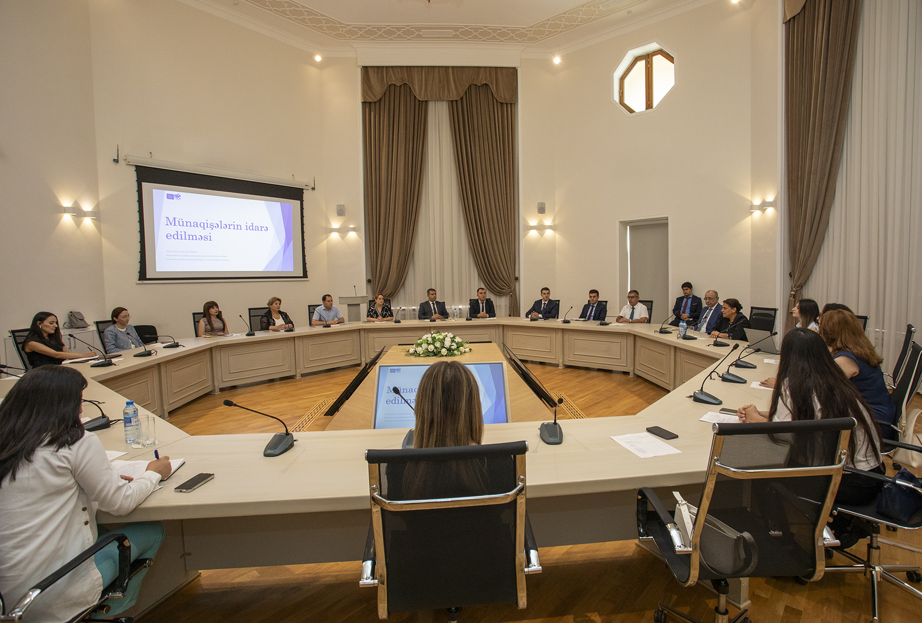 Təlimdə Dövlət İmtahan Mərkəzinin nümayəndələri Gülü Əliyeva və Nərmin Xəlilovanın mövzu ilə əlaqədar təqdimatları dinlənilib. Münaqişə anlayışı, istiqamətinə və həcminə görə növləri, yaranma səbəbləri və effektiv həlli, mürəkkəb insan tipləri, işgüzar mühitdə yaranmış gərgin situasiyalarda düzgün davranış strategiyaları, münaqişələrdə ünsiyyətlə bağlı əsas məqamlar, emosiyalara qarşı davranış və digər məsələlər haqqında ətraflı məlumat verilib. Sonda fərqli situasiyalara dair praktiki tapşırıqlar yerinə yetirilib, əməkdaşları maraqlandıran suallar cavablandırılıb.